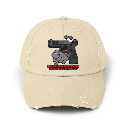 Glock "Maybe You're the Problem!" Unisex Distressed Cap - Fun Statement Hat with Gun Graphic - Perfect for Casual Outings and Gift Giving