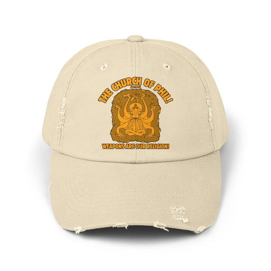 Unisex Distressed Cap - The Church of Phil - Weapons Are Our Religion!