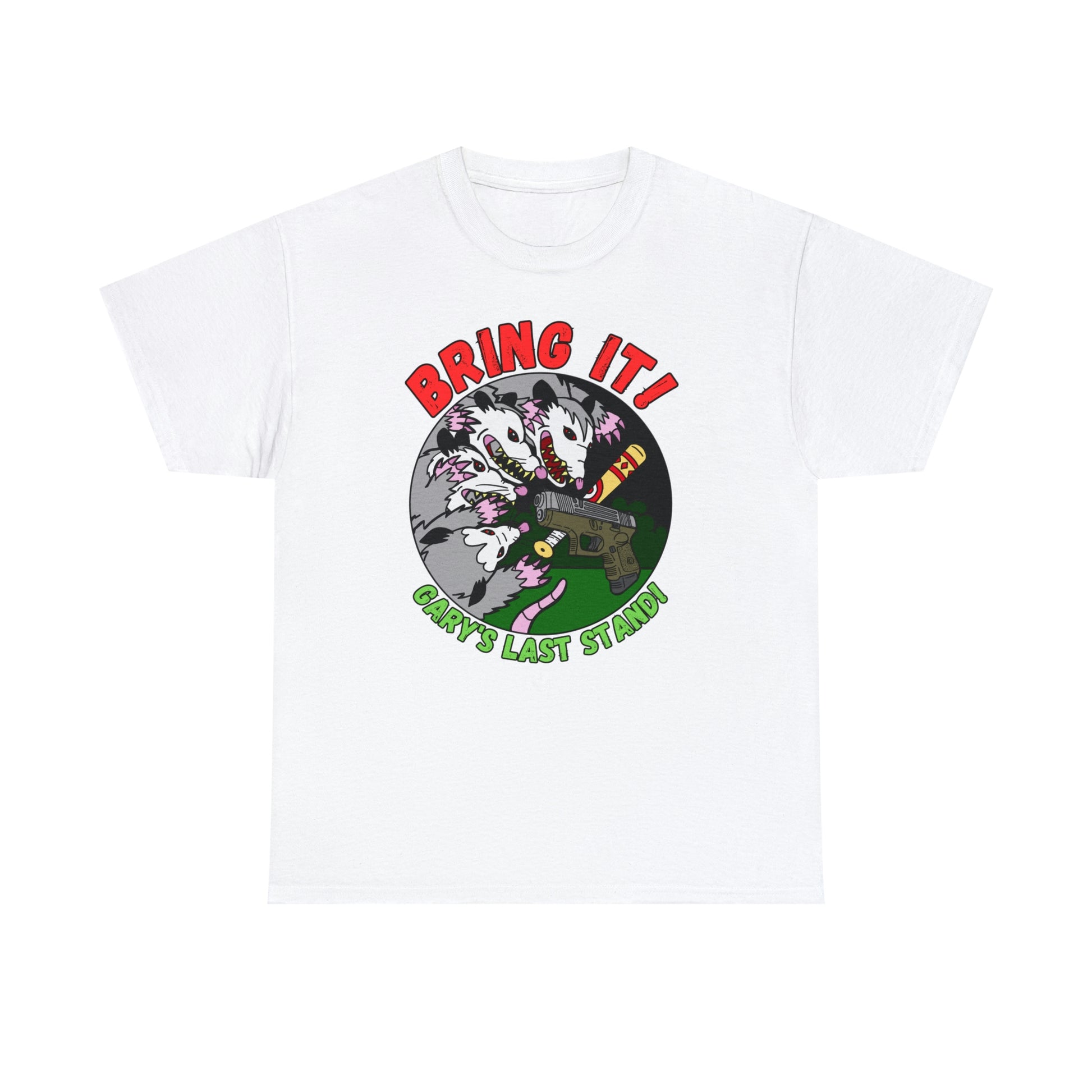 Memorial Tee depicting the valiant last moments of Gary the Glock!