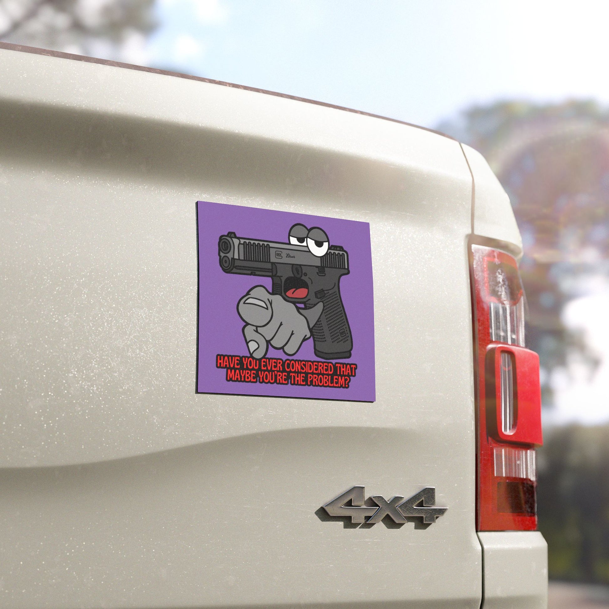 Humorous Car Magnet - "Have You Ever Considered That Maybe You're The Problem?" Glock