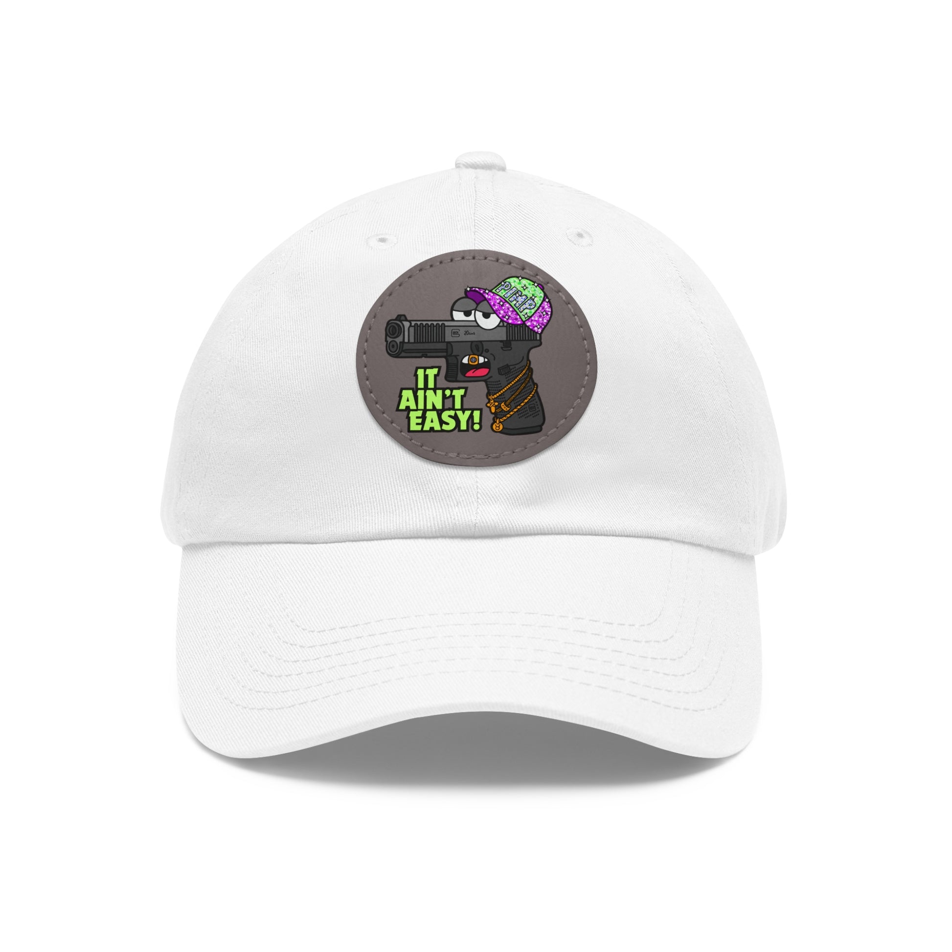 It Ain't Easy! Dad Hat with Leather Patch (Round)
